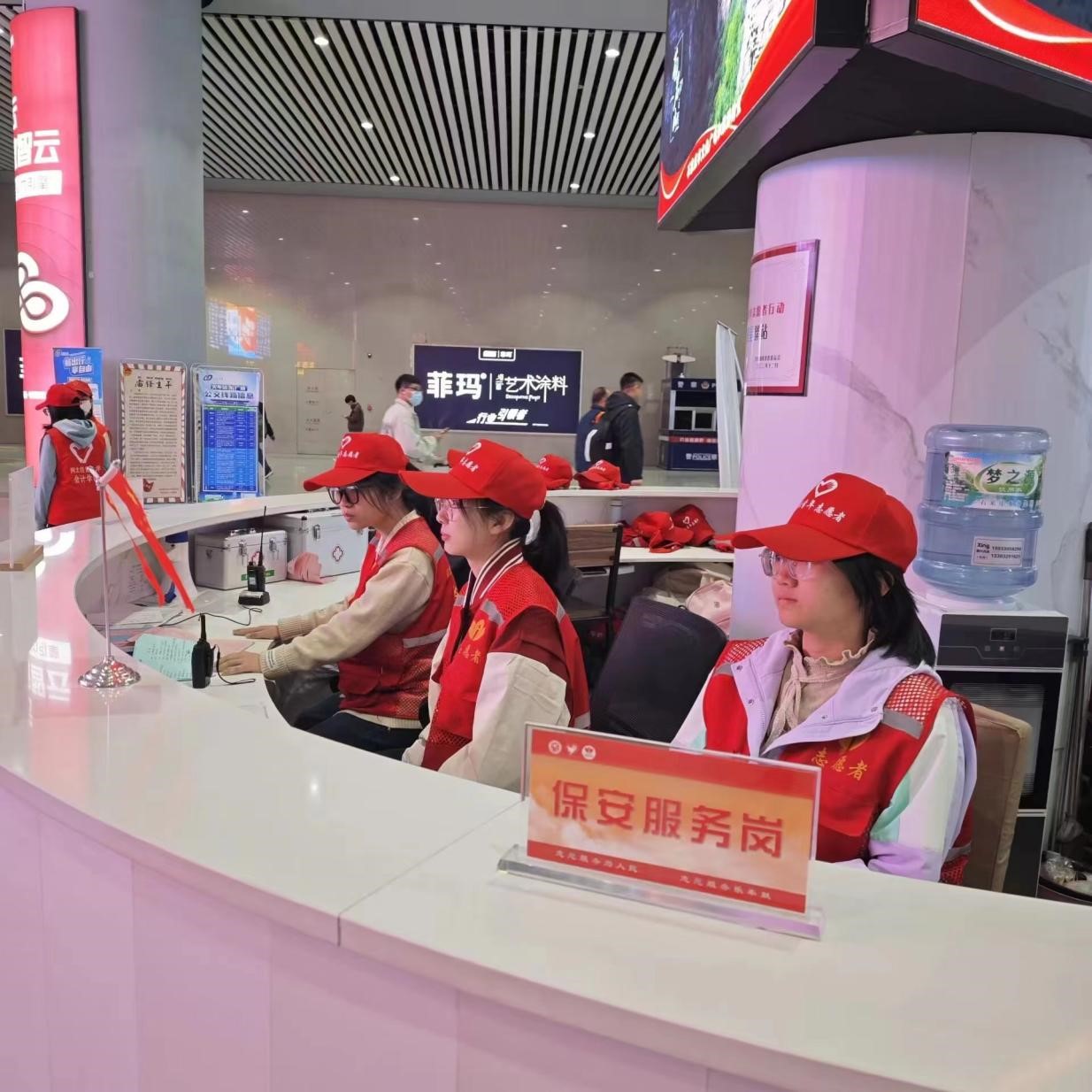 青年志愿者服务大队组织同学们在石家庄火车站进行志愿服务,该活动由两位青志干事带队,共14位青年志愿者参加。