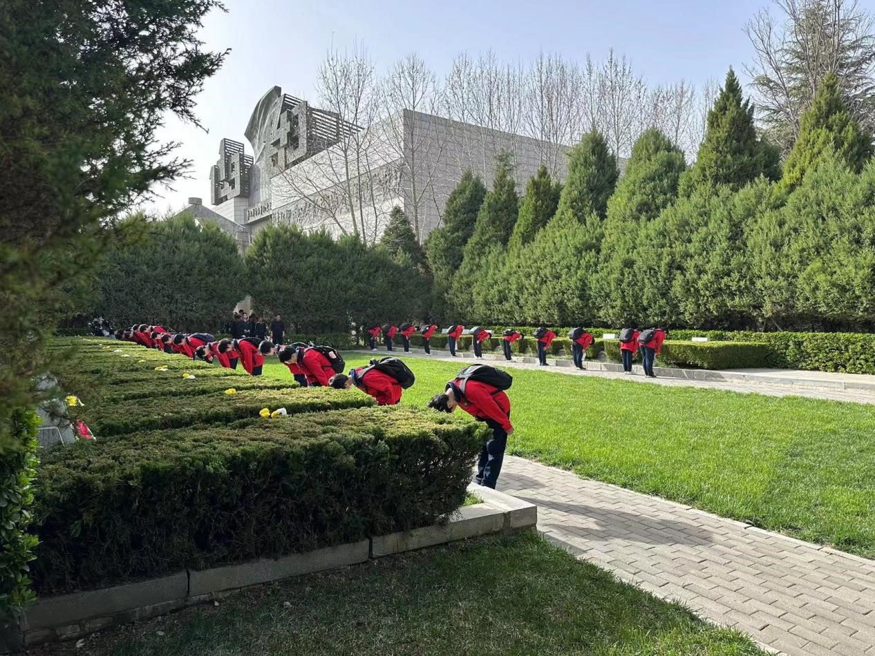 122名志愿者前往华北军区烈士陵园参加由河北省爱心公益协会组织的烈士陵园志愿服务,同时组织学院青年志愿者开展“缅怀革命先烈,弘扬民族精神”清明祭扫活动。