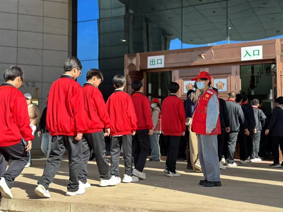 广场组的志愿者们稳重踏实,他们维持着烈士陵园和纪念馆的活动秩序,引导人员有序入场,文明祭扫。
