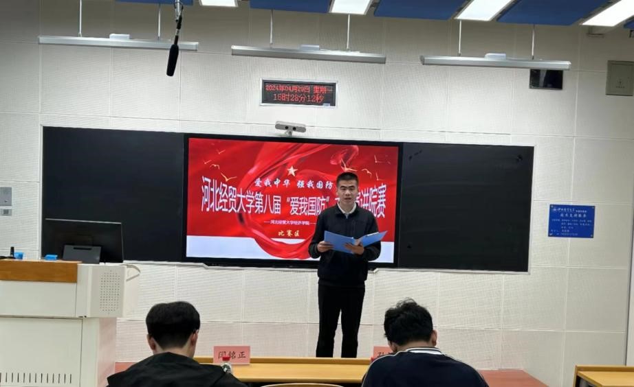 “爱我国防”演讲比赛院级选拔赛在北三教B110正式举行。本次比赛评审团由团委副书记孙禄坤、组织委员闫铭正、办公室刘靖航组成。