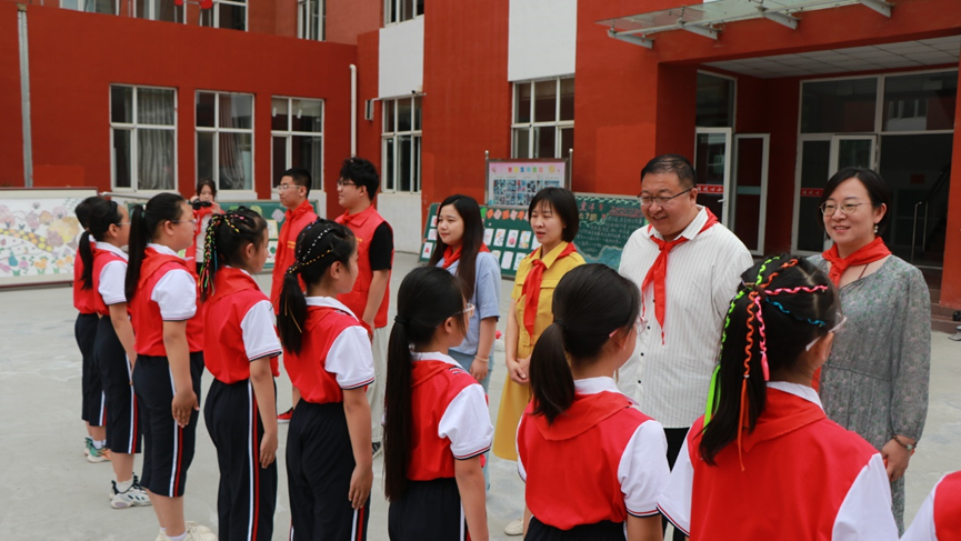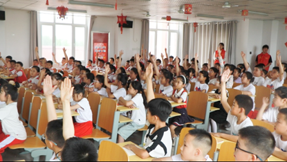 老师和同学们对领导老师和志愿者的到来表示热烈欢迎,同学们还为志愿者们系上了鲜艳的红领巾,向志愿者们敬以少先队员之礼。少先队员是祖国的花朵,而志愿者们正如点点萤火,为花朵指引生长的方向。