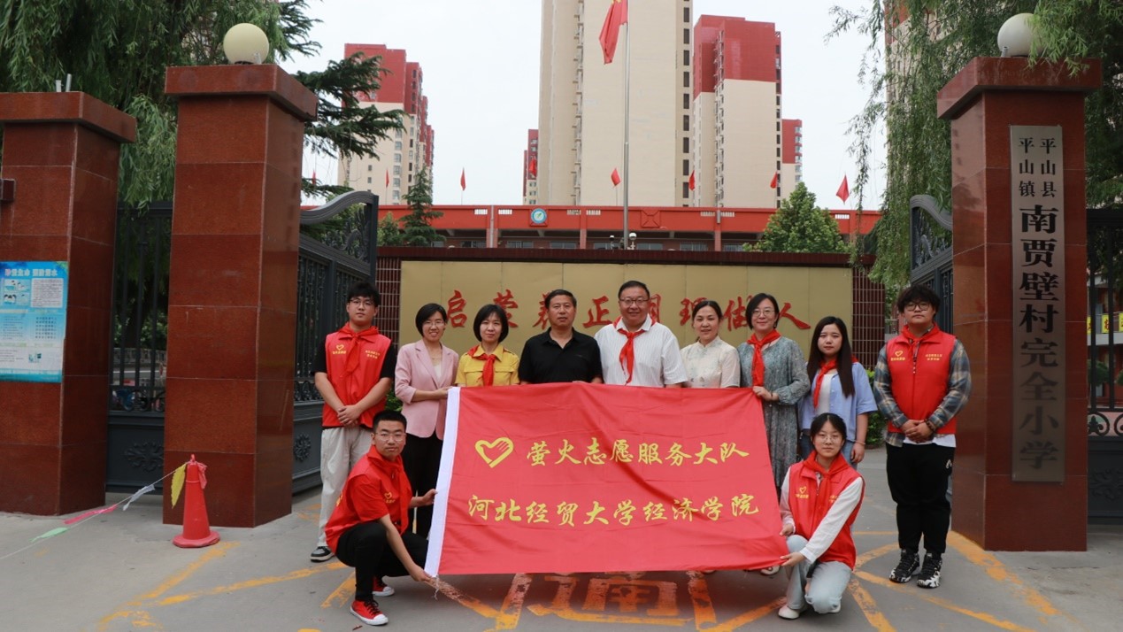 萤火志愿服务大队赴平山县南贾壁村完全小学开展“筑梦财商”经济学小课堂支教志愿活动。本次志愿活动由学院党委书记刘振滨、党委副书记侯彦利、李珊珊老师、吴子雨老师带队前往。
