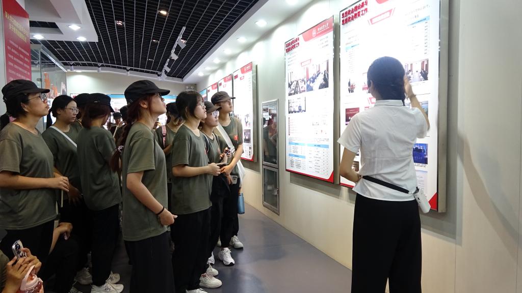 新生们在军训教官的带领下有序地走进校史馆,在参观过程中,讲解员生动地讲述着学校的发展历程,从建校初期到如今的辉煌成就。新生们认真聆听,不时驻足观看,眼神中充满了对学校历史的敬仰。照片定格的无数瞬间中,同学们深刻体会到学校的发展历程,感受到作为经贸人的勇气和使命。
