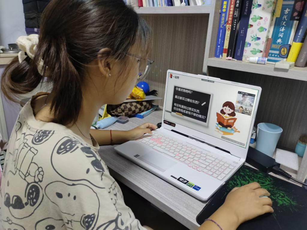 23国贸三班赵恩琪:在这个充满活力的暑期,我有幸成为一名云支教志愿者,通过互联网线上加线下的方式,与中小学生建立联系,一起运动读书,走访家乡红色历史文化,学习绿色知识。每一次云课堂的背后,我都会精心准备课件,我们的每一次连线互动都是全新的体验。跨越屏幕,共筑知识桥梁,相互分享经历,畅谈知识感悟,让我在云支教中获得快乐与满足,为志愿服务贡献自己的力量。