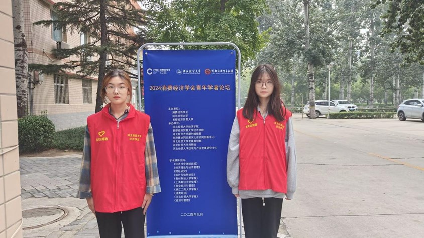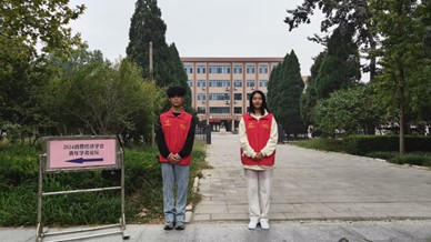 青年志愿者服务大队在校园主干道的十字路口为参加本次消费经济学会青年学者论坛的专家提供引导志愿服务。