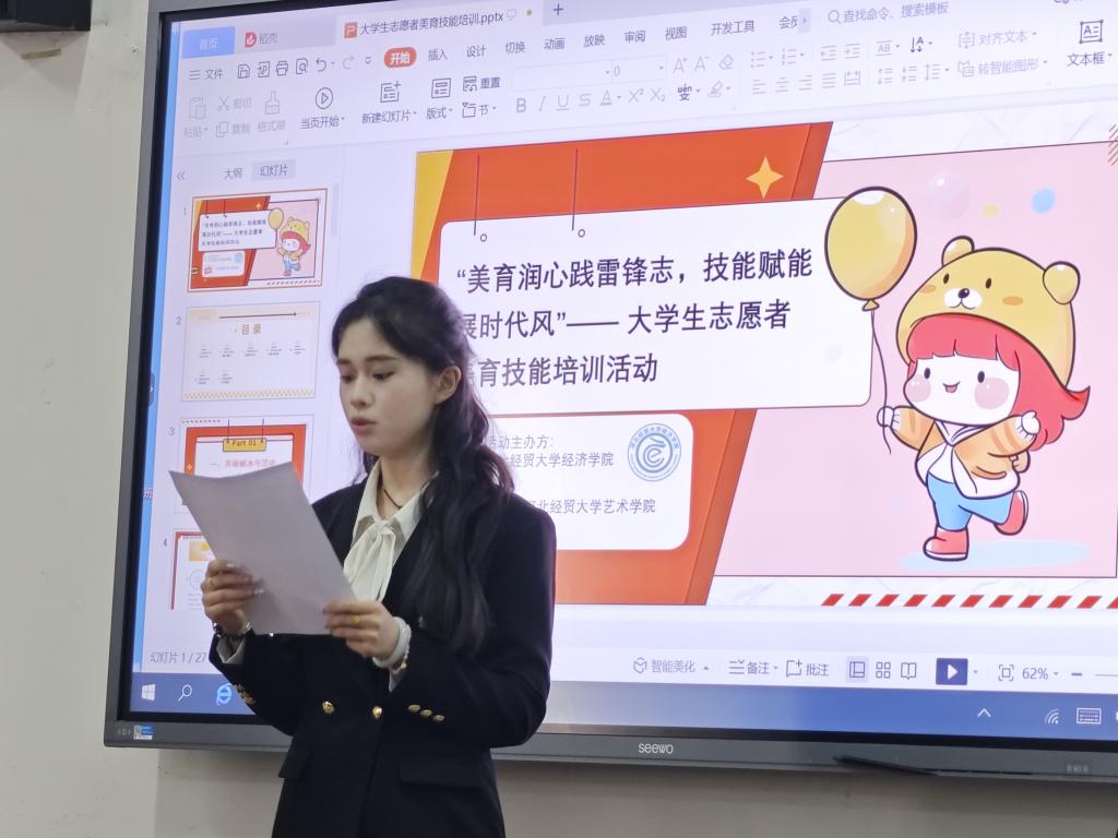 青年志愿者服务大队与艺术学院“青艺”志愿服务团在艺术学院楼113会议室联合举办了大学生志愿者美育技能培训活动。