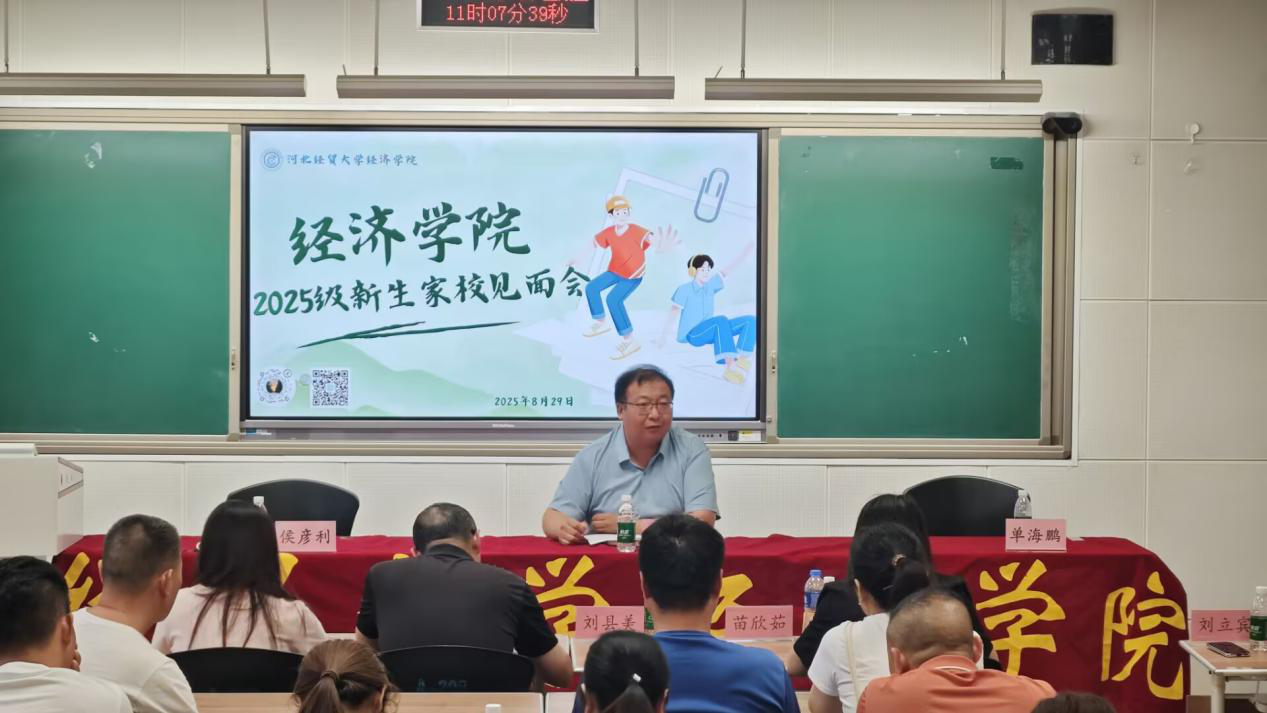 在北三教A208教室召开2025级新生家校交流会。学院党委书记刘振滨、党委副书记侯彦利、副院长单海鹏、心理健康教研室主任蔡炎、新生班级辅导员以及2025级新生家长代表参加。