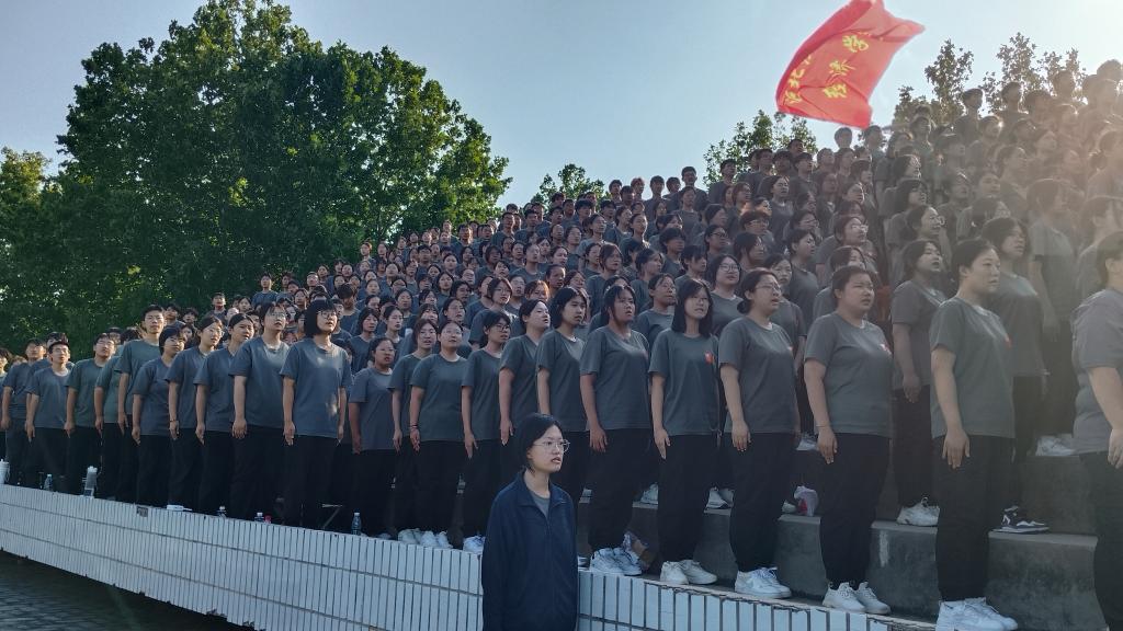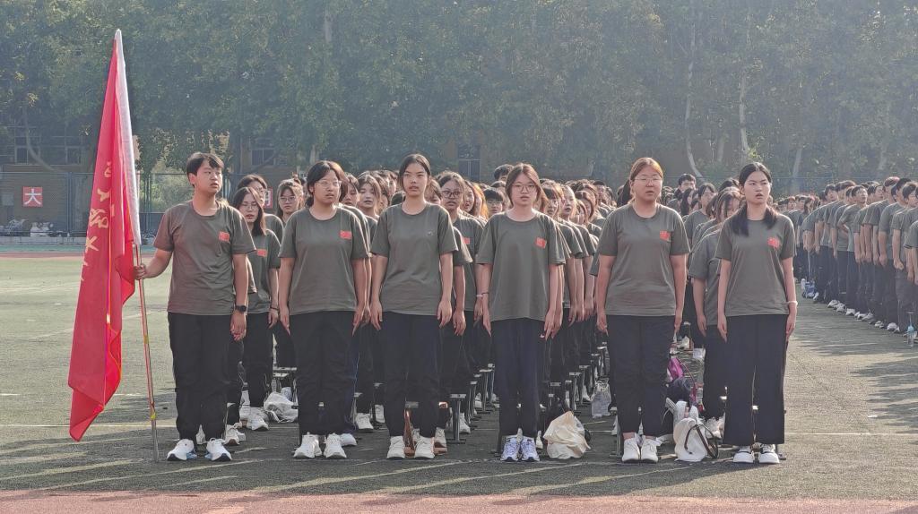激昂嘹亮的国歌奏响,为军训汇演拉开序幕。军旗在风中猎猎飘扬,各连队整齐列队、精神饱满,静候检阅时刻的到来。
