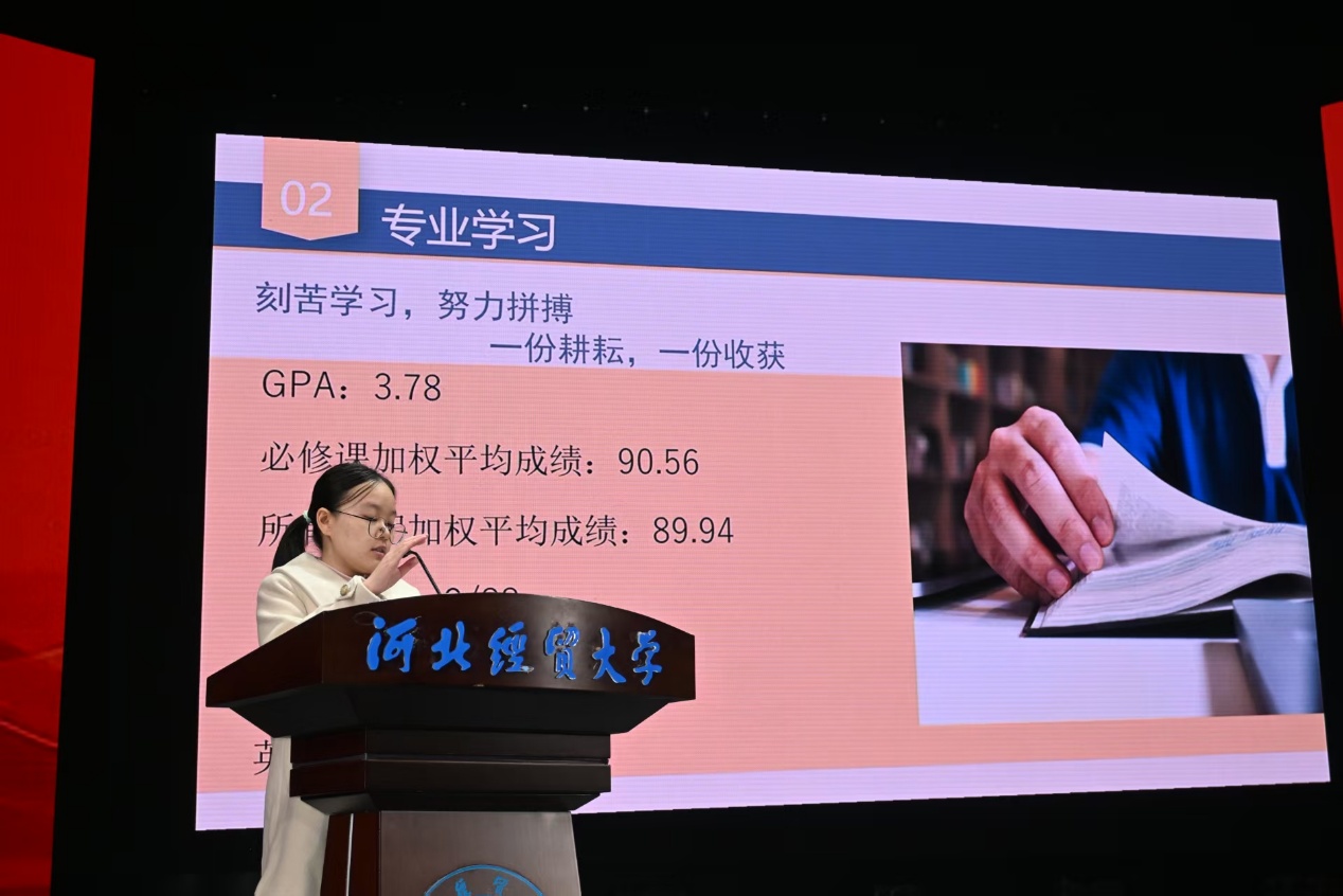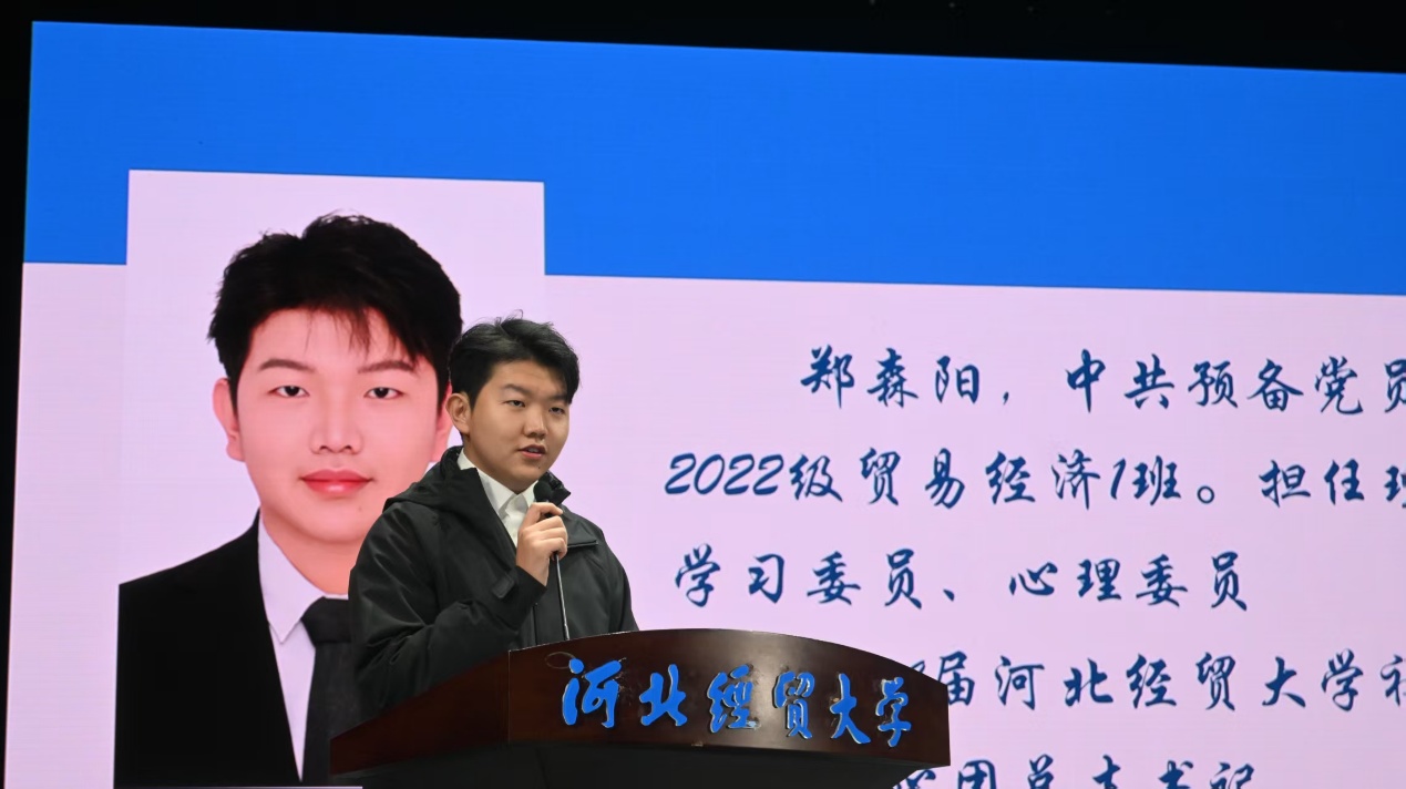 2021级国际经济与贸易一班刘子睿优秀毕业生,由自己的大学四年经历讲起,循序渐进,用亲切细腻的语言,从服役到工作不断磨练自己并与同学们分享了经验。提醒同学们应当学会坚持到底,学会大胆主动,扎实走好每一步所有的积累都将会在将来的某一天展现出来。