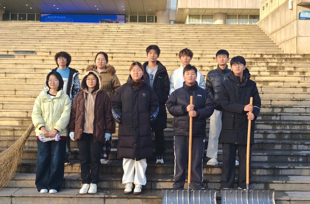 雪后初霁,气温依旧偏低,图书馆周边道路、台阶被积雪覆盖,部分区域形成薄冰,给过往师生的出行带来极大不便,也存在一定安全隐患。为切实保障雪后校园师生出行安全,营造整洁通畅的校园环境,12 月 13 日,性爱影片 组织志愿者在图书馆四周开展扫雪活动,由生活权益部统筹负责。