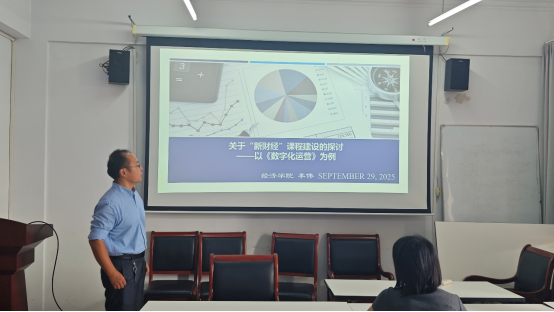 在第三办公楼中会议室组织开展“新财经”课程建设专题教学沙龙。本次沙龙由学院李伟老师主讲,围绕《数字化运营》课程建设展开深度研讨,学院多位教师参与交流互动。